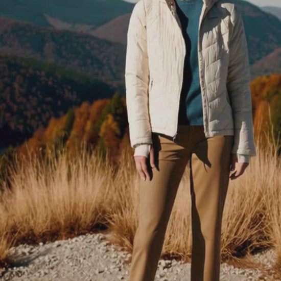 Heavenly warmth in a sleek, long, and lightweight jacket that’ll keep you cozy on the move. The women’s Heavenly Long Hooded Jacket combines a light yet toasty synthetic down insulation and a thermal-reflective lining for bonus warmth without the bulk. The shell fabric resists wet weather, while a flattering, longer cut and comfort cuffs with thumbholes provide crucial coverage from the chill.