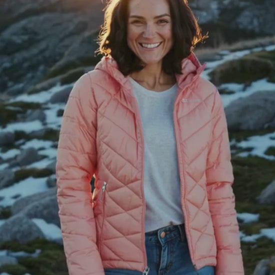 Heavenly warmth in a sleek, long, and lightweight jacket that’ll keep you cozy on the move. The women’s Heavenly Long Hooded Jacket combines a light yet toasty synthetic down insulation and a thermal-reflective lining for bonus warmth without the bulk. The shell fabric resists wet weather, while a flattering, longer cut and comfort cuffs with thumbholes provide crucial coverage from the chill.